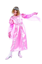 This pretty Princess Dress is pink with silver trim. It is a satiny fabric that will make your little girl feel royal.