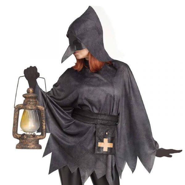Plague Doctor Poncho fits Teens or Adults. Wear this for Halloween. This is perfect for office parties or school celebrations. It is lightweight and comfortable to wear inside. It features stitch printing giving it a true plague doctor feel.