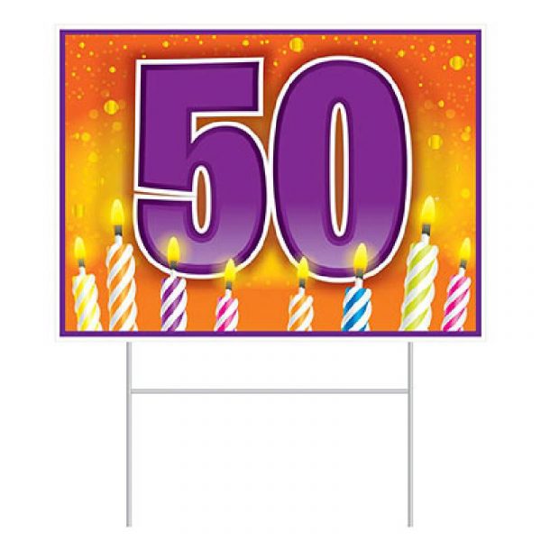 Let partygoers know where the celebration is with all-weather Plastic “50” Yard Sign