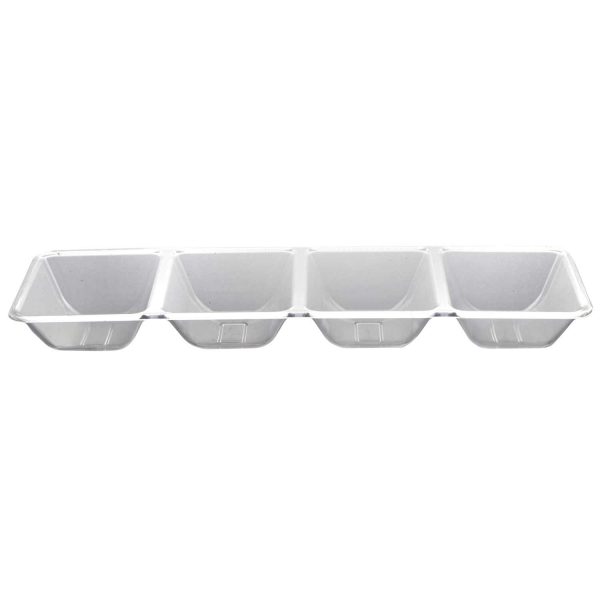 Use this clear Plastic 4 Compartment Rectangular Serving Tray to offer snacks, hors d’oeuvres, and appetizers to your party guests! Tray measures 16″ x 5″.