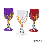 Plastic Goblet with Skulls at the bottom of the stem. Boney fingers appear to be holding the top onto the stem. Approx. 7″ tall.