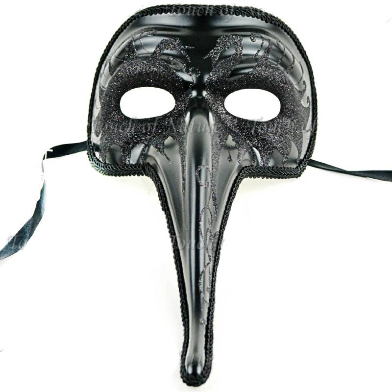 Wear this black Venetian Glittered Long Nose Face Mask for any masquerade party, Halloween, or Mardi Gras!