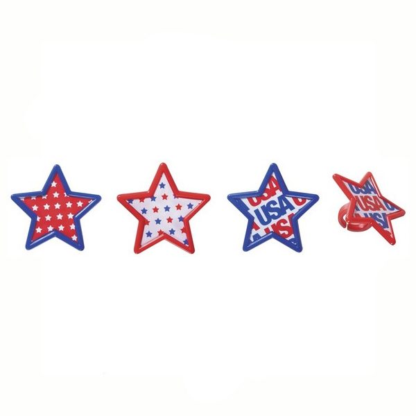 Plastic Patriotic Star Rings – Dozen per package. You can wear these or use them as napkin rings for your 4th of July party!