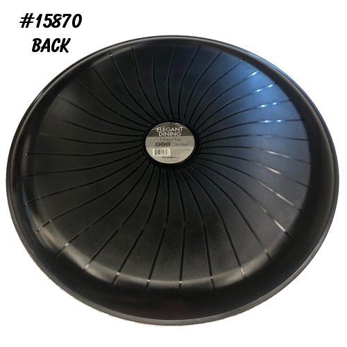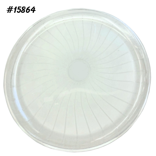 16″ round plastic serving trays with Sunburst or Spiral Design. The textured designs are molded into the underside of the trays, leaving the top smooth for easier serving and clean up.