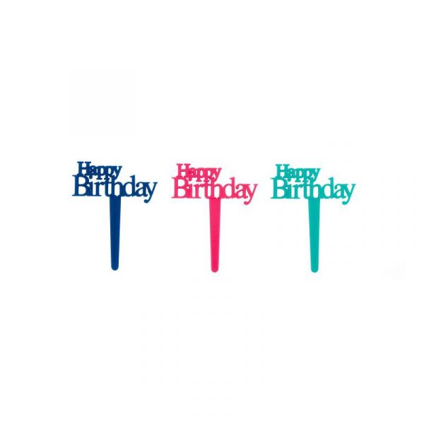 Plastic Solid Color Happy Birthday Picks are an easy way to add that pop of color to birthday treats. These are colorful and really pop. Great for cake and cupcakes to add to an overall theme. Made with food-safe plastic.