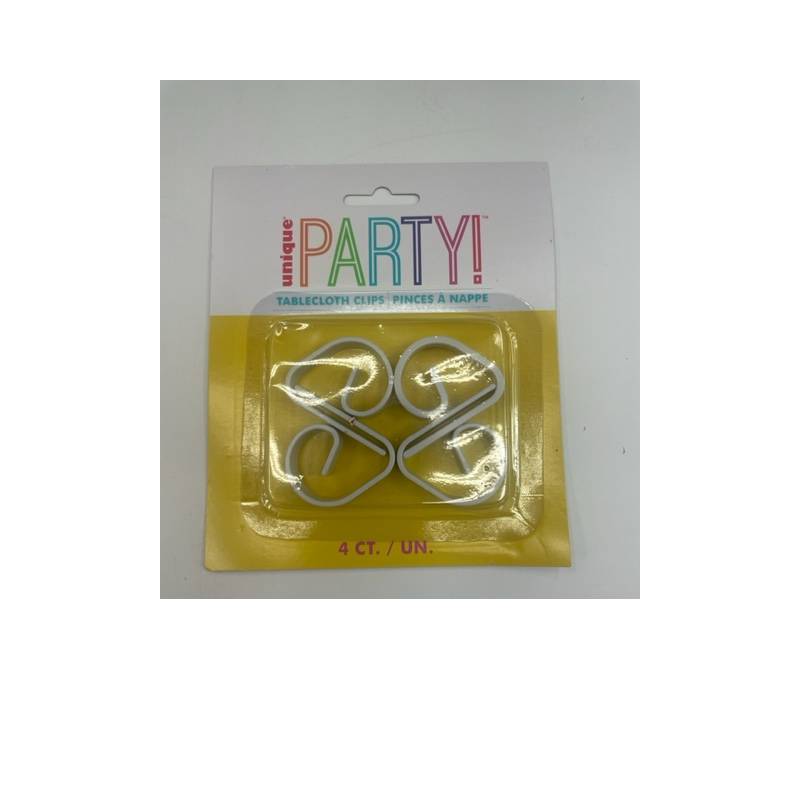 Keep your tablecloth clasped in place with these Plastic Tablecloth Clips. 4 to a pack.