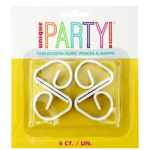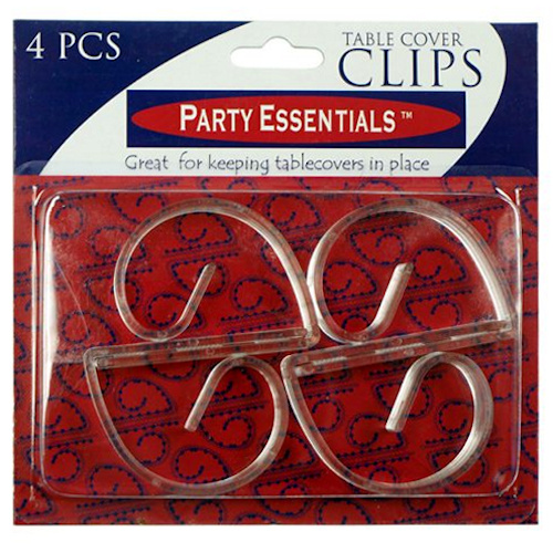 Keep your tablecloth clasped in place with these Plastic Tablecloth Clips. In clear (4 pack and 24 pack) and white (4 pack only).