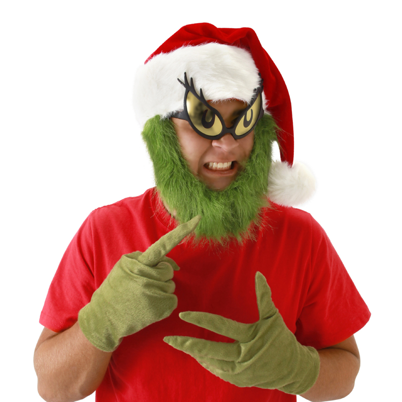 Plush Grinch Hat with Green Beard Halloween Costume. Turn into a sour puss with this nasty Grinch Hat w/ Fur Beard. It’s the perfect way to sulk around during the holidays. That is of course until you fall in love with the people in Whoville!