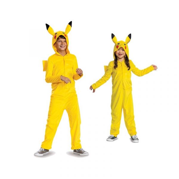 Wear Pokemon Pikachu Childs Costume for Halloween, themed parties, cosplay, school plays, and more. This package features a jumpsuit with tail and a mask.