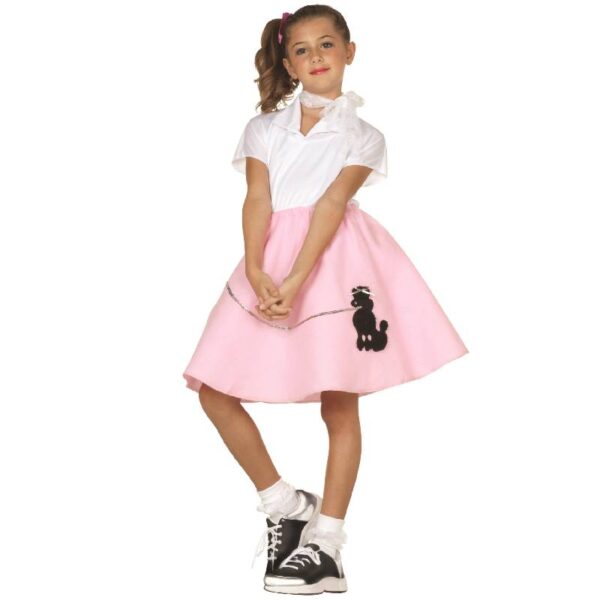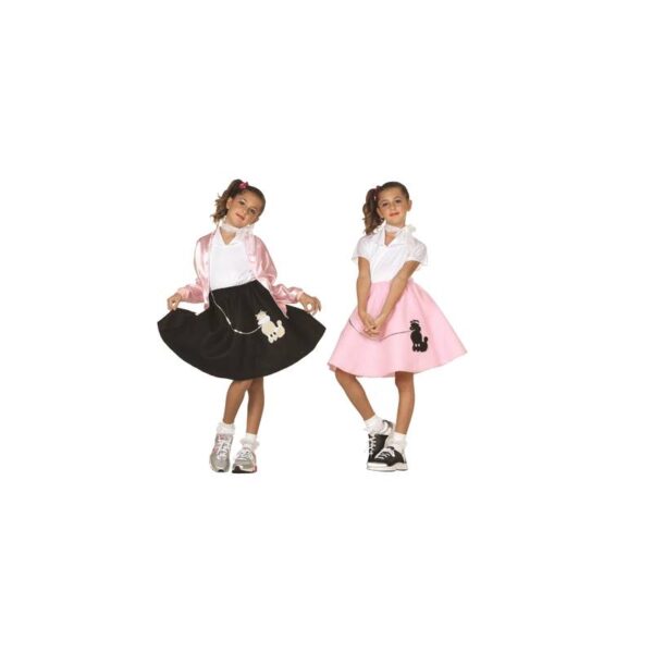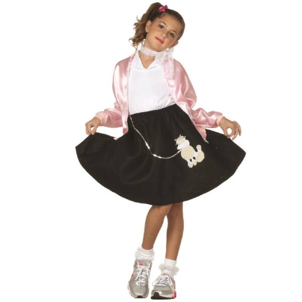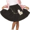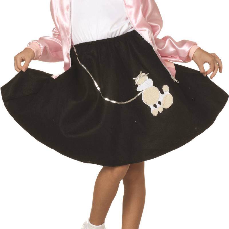 This Child’s Poodle Skirt Black or Pink is available in three children’s sizes. Perfect for a sock hop or any 50s themed party. This child’s poodle skirt features a cute image of a poodle on a skirt!