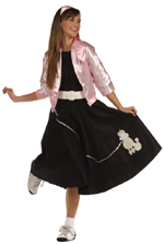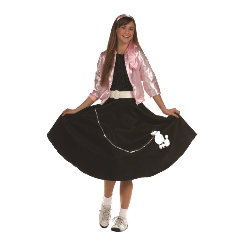 Rock and roll this Halloween in this Adult Poodle Skirt which features a pink skirt that has a full cut with a fuzzy white poodle applique on the left corner and a silver sequin leash that runs from the waist to the poodle’ neck. A matching scarf is also included. Enjoy the party in this lovely costume. This costume is available in standard (fits up to size 14), or plus size (fits size 16-20).