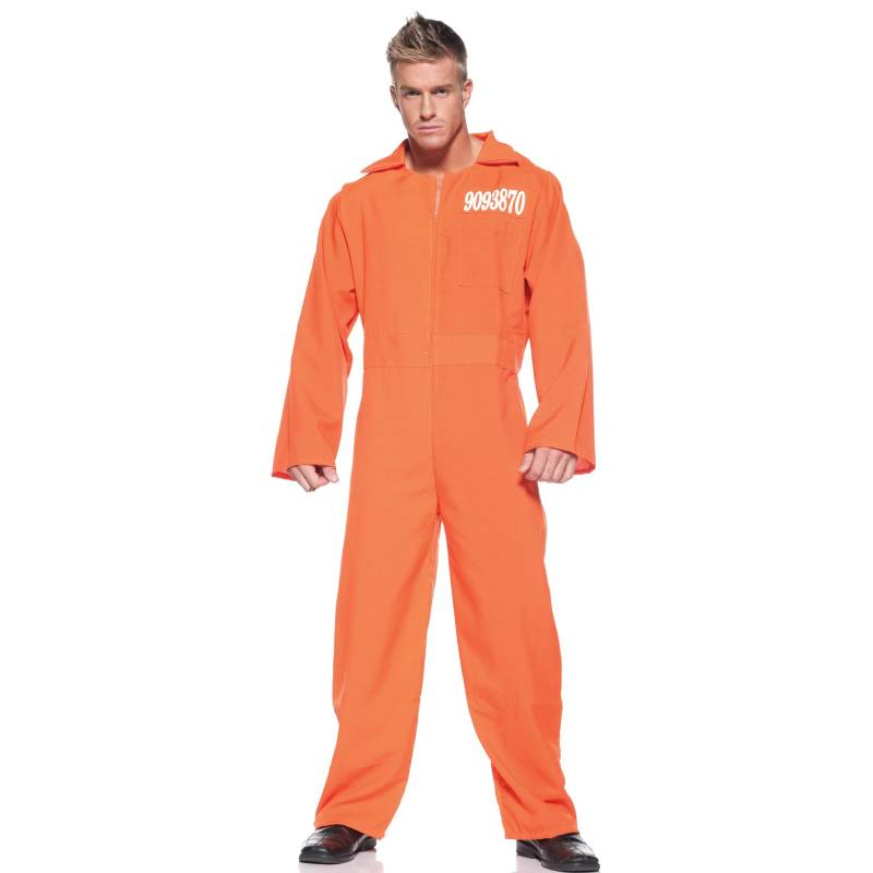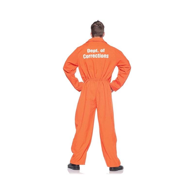 Prison Jumpsuit Adult Costume is available in 2 different sizes. Wear this for Halloween, themed parties, theatrical productions, fundraisers, and more. This jumpsuit has a front zipper closure. Stay comfortable all day or night. Wear your most comfy shirt, pants, and shoes. Have fun looking like a bad guy. Easily step into a classic costume.