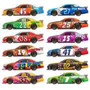 These plastic Race Car Props include 12 in a package and measure 32.5″ long. Unfold each colorful car and smooth it out on the background of your choice.