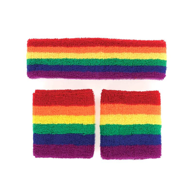 Rainbow Elastic Headband Wristband Set is a colorful way to brighten the day. Wear this to summertime parties, pride parades, and Halloween! No need to wipe sweat away! This set is perfect for people who want to look cool and stay cool.