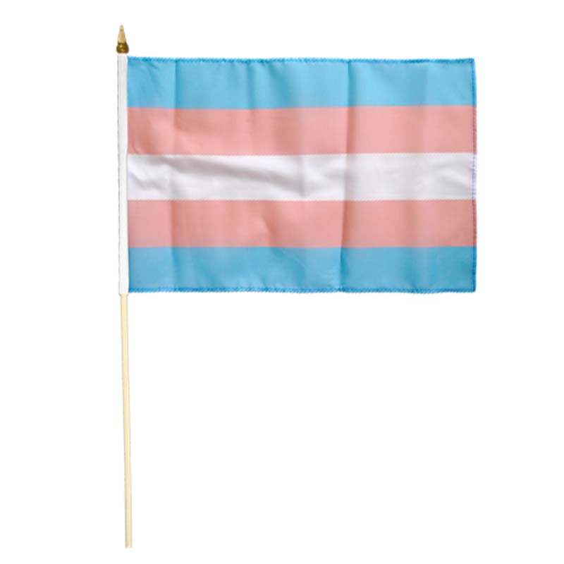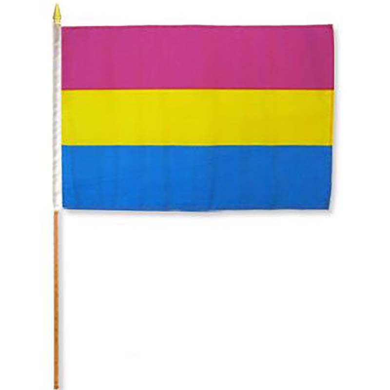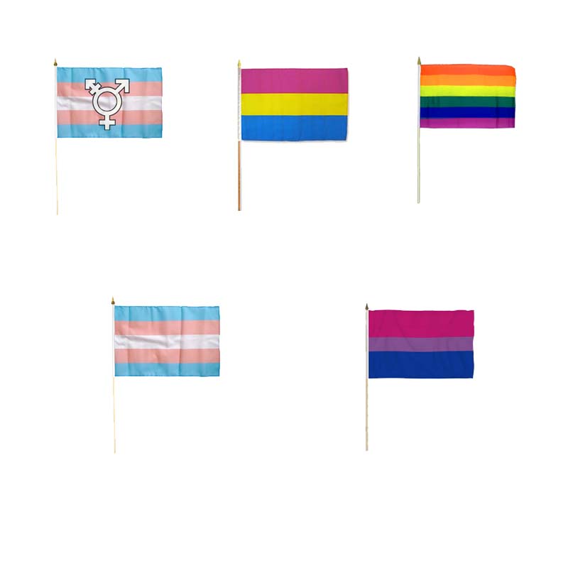 Each 12” x 18” fabric PRIDE flag on a wooden dowel stick is brightly colored and printed on polyester. Choose from Rainbow, Pansexual, Bisexual, Transgender and Transgender with the symbol. The wooden dowel rod makes it easy to wave in a parade. Attach one to your bike for the Pride Ride!