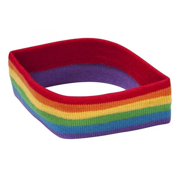 Wear a Rainbow Stripe Headband for any PRIDE event. Wear this brightly colored rainbow headband to sporting events and practice. Wear it when you ride your bike or in the PRIDE parade.