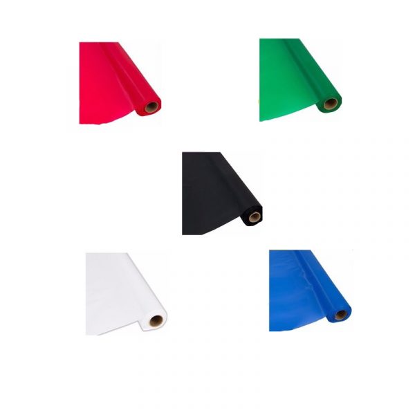 Plastic table cover rolls can be cut to fit most rectangular tables. Use these solid colors to decorate for any theme or banquet! Each roll is 250′ x 40″. If roll is cut to fit 6′ long tables, it will cover approximately 30 tables. If roll is cut to fit 8′ long tables, it will cover approximately 20 tables.