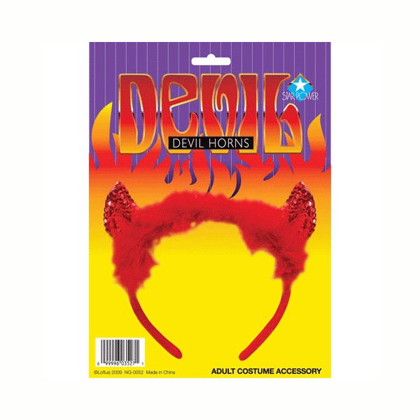 Costume Promo Sequin and Feather Devil Horns on a red plush headband. Perfect accessory for a devil costume!