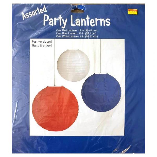 Red White Blue Assorted Party Lanterns are fun and festive. Hang these lanterns and enjoy! 3 lanterns per package with wire hangers.