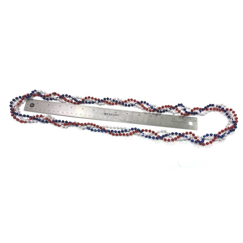 Wear a Red, White, and Blue Braided Patriotic Bead Necklace or use it to decorate your tables! Measures about 18″. Three strands of beads, one metallic red, one metallic blue and one white make up this fun wearable item for Independence Day, 4th of July, or any patriotic event.
