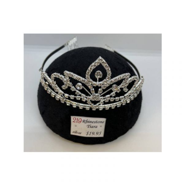 This rhinestone tiara on silver colored frame features many beautiful, sparkling rhinestones. Our Tiaras are light and comfortable to wear, usually weighing less than 2 oz. Tiara features combs at each end of the band to secure into the hair.