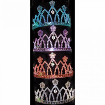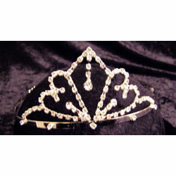 Rhinestone tiara on silver colored frame is approximately 3″ high and features many beautiful, sparkling rhinestones. Tiaras are light and comfortable to wear, usually weighing less than 2 oz. Tiara comes with combs at each end of the band to secure into the hair.