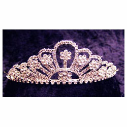 Rhinestone tiara on silver colored frame is approximately 2” high and features many beautiful, sparkling rhinestones. Tiaras are light and comfortable to wear, usually weighing less than 2 oz. Tiara comes with combs at each end of the band to secure into the hair.