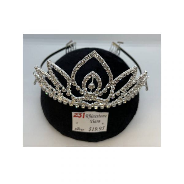 Rhinestone tiara on silver colored frame features many beautiful, sparkling rhinestones. Tiaras are light and comfortable to wear, usually weighing less than 2 oz. Tiara comes with combs at each end of the band to secure into the hair.