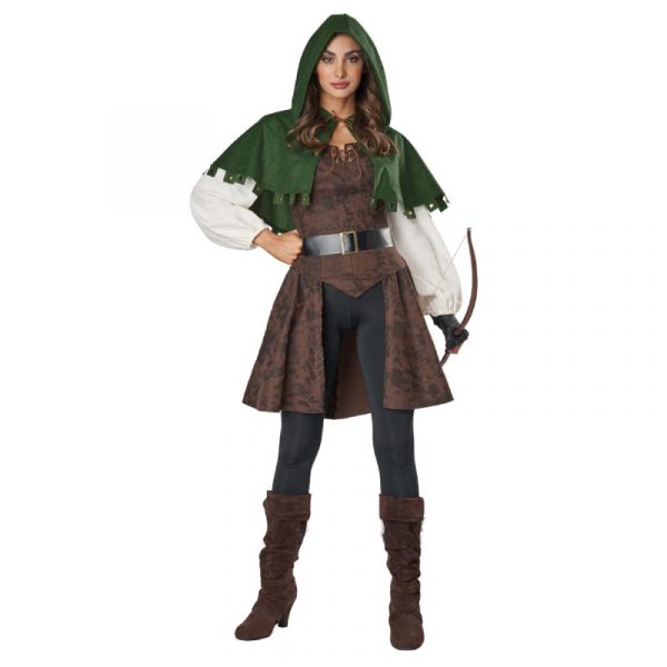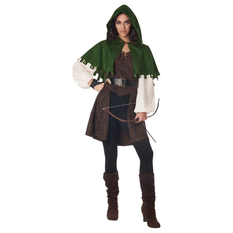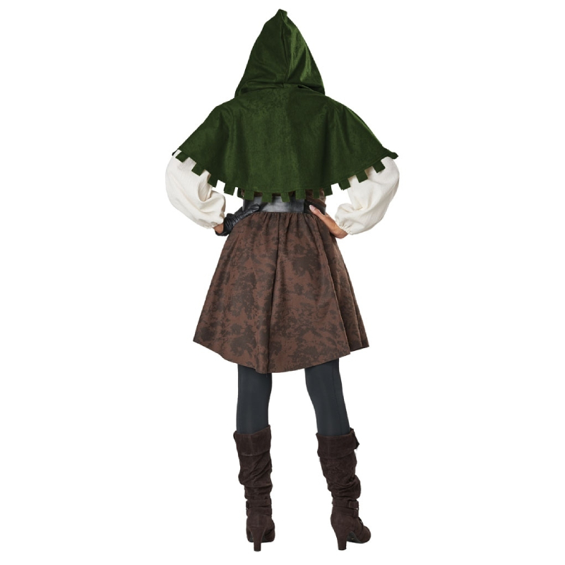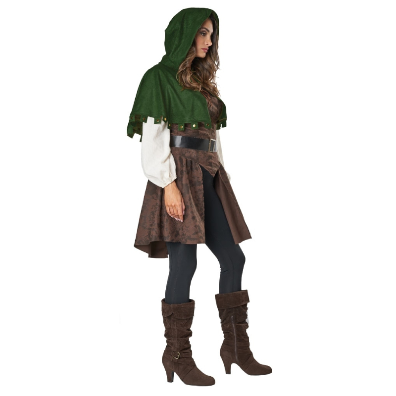 Robin Hood Legendary let’s you be the hero of the village in Sherwood Forest. This features a tunic top with attached sleeves and a lace up neckline. It comes with a hooded cape/cowl, a belt, with decorative buckle and one archer styled glove. The belt velcros around your waist. Wear this for Halloween parties, Trick-o-Treating, productions, cosplay, themed parties.