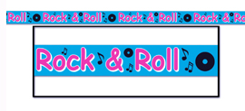 Here’s a neat party decoration for a 50’s party. This plastic party tape can be used anywhere. Frame something with it, use it to rope off an area, hang it like you would crepe paper streamer or border a room with it.