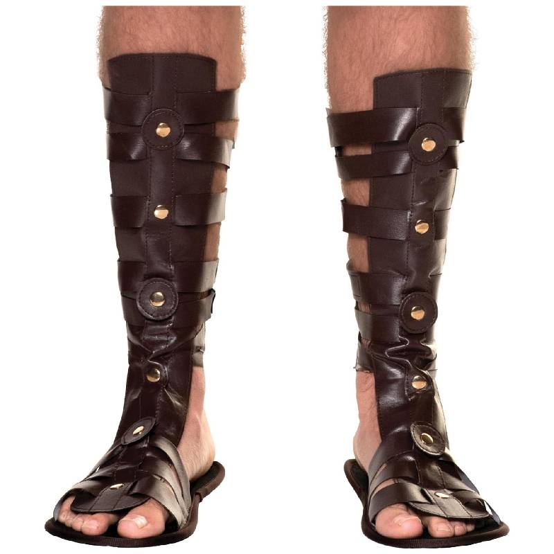 You’re in the Easter pageant and you have nothing to wear on your feet! Well now you do! These brown vinyl Roman sandals lace up the leg and tie at the side.