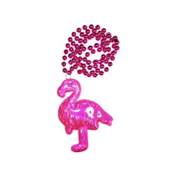 Round Metallic Bead Necklace w Prismatic Flamingo