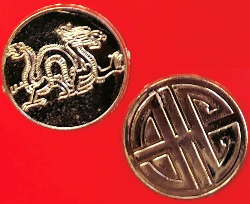 - dragon on one side, lucky circle design on the opposite