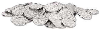 Round Plated Plastic Coins are perfect for tossing on your pirate party table or add to your pirate treasure chest.