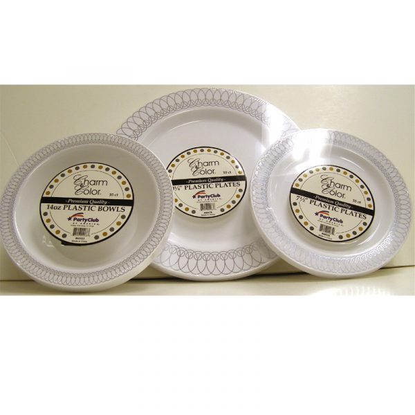 Purchase all three packages of these Round White Plastic Plates and bowls to serve all your guests in style without the work of cleaning up dishes! Select from 7″, or 10 1/4″ plates or 14 oz. bowls.