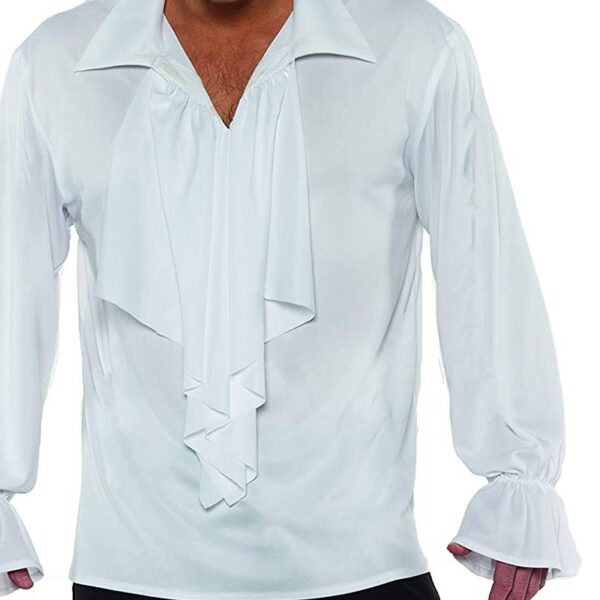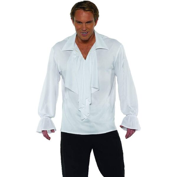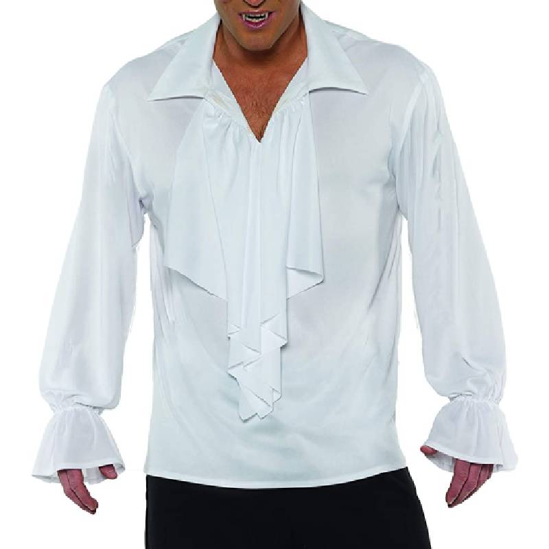 Ruffle Front Vampire Shirt is a loose fitting white shirt perfect for many costumes. Wear this for a pirate, prince or king, renaissance man, pilgrim, or vampire!