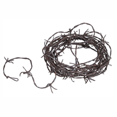 This 12′ “Rusty” Barbed Wire Garland is a brownish color. It is soft and will not scratch or otherwise hurt. It can be used for a prop, or it also makes a great “Crown of Thorns” for Easter time.