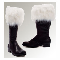 These black Santa boots are trimmed in very realistic looking white faux fur. They make a wonderful accessory for any Santa Suit costume. These are available in mens shoe sizes medium or large. These are a wearable, “mall Santa” quality.