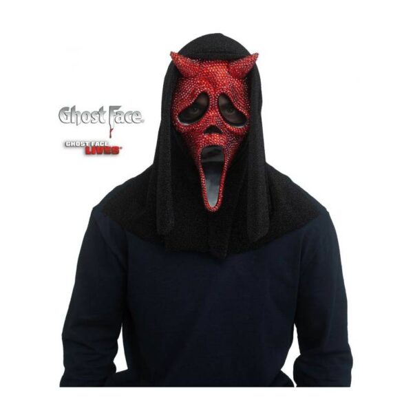 Bright Red Scream Ghost Face Devil Bling Mask covered with rhinestones. This is a heavier mask for adults or decor!