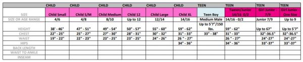 One size, fits up to kids size 12. This is a great Halloween costume for kids who want to be scary! It’s very comfortable too.