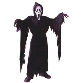 Kids Black Robed Scary Monster. One size, fits up to kids size 12. This is a great Halloween costume for kids who want to be scary! It’s very comfortable too. As  seen in the motion picture  SCREAM. Scream Stalker kids costume.