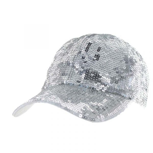 Wear this Sequin Fabric Sparkle Cap. Pull your pony tail through the hole in the back! Elastic strap in the back stretches to fit many sizes! Wear it to a 90s theme party or for a hip-hop look! Choose silver or black!
