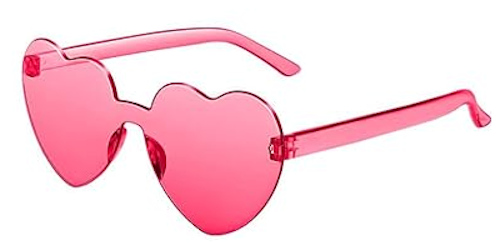 Shaded Lens Rimless Heart Shaped Eyeglasses comes in a crisp pink color. Choose these to best compliment your outfit. These are perfect for Taylor Swift and Barbie enthusiasts. Show off your own style. These are fun, stylish and eye-catching. Wear these to brighten up a crowd. Accessorize for Halloween parties, vacation, festivals, or just for your everyday attire. Use these as photo props for Valentine’s Day photos.