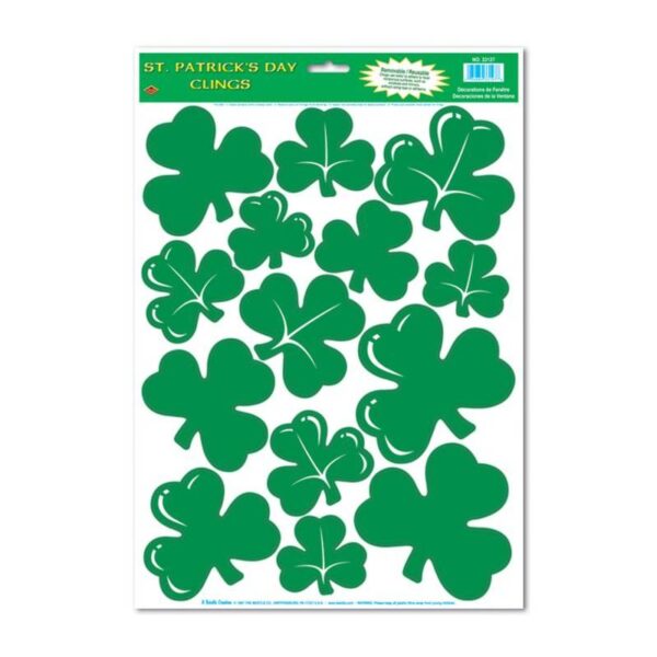 Saint Patrick’s Day Shamrock Clings. Decorate your windows with these clovers. 14 clovers come in different sizes to add variety.