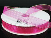 Here is a beautiful 5/8″ wide sheer Fuchsia ribbon with iridescent stripes. There’s 50 yards on a roll.