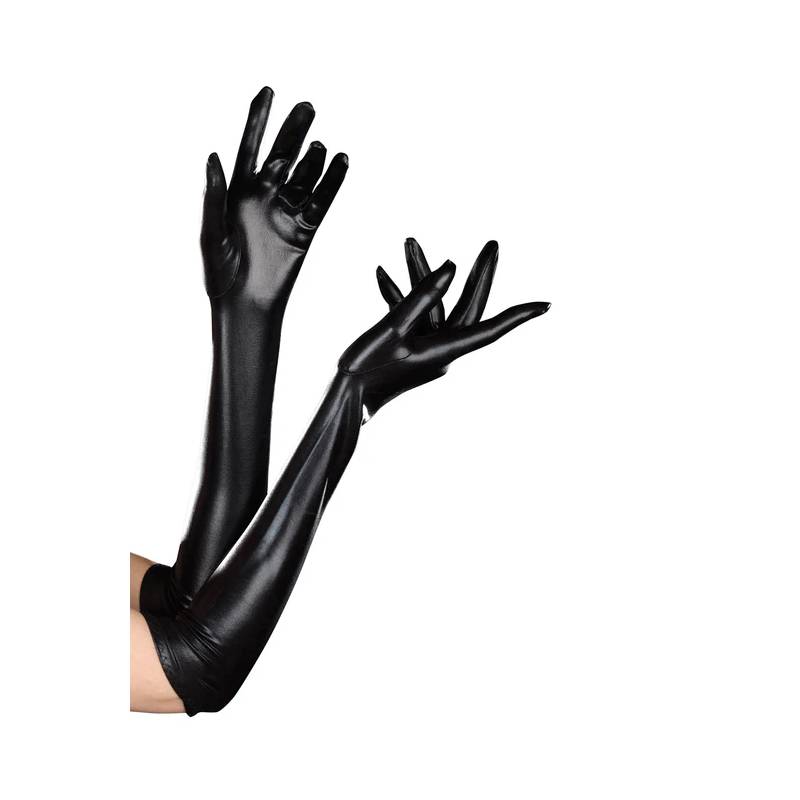 Shiny Stretch Knit Dominique Gloves are an excellent costume accessory. Wear these for superhero costumes, Catwoman, sexy costumes, and more. Wear these for Halloween, theatrical productions, cosplay, drag, school plays, themed parties and more.