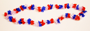 Show your patriotism and wear Silk Mini Blossom Lei – Red, White and Blue! This lei is 42″ around. Use these for luau’s or patriotic celebrations. They are perfect for party favors or use them in parades.
