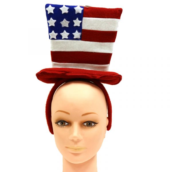 Wear a Red White Blue Fabric Patriotic Hat on a Headband for any patriotic party or event. These are a great value! The red, white, and blue U. S. flag design is great for Honor Flight participants! Give one to each guest at a 4th of July party, Memorial Day, Labor Day or Veteran’s Day! Or wear one when you go to vote!