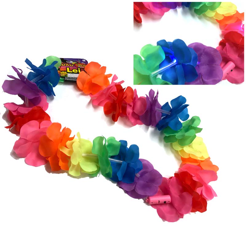 Wear a Silk Rose Blossom Light-up Flashing Lei to a Hawaiian Luau! Light up the party! Perfect for an event like BLINK or Burning Man!