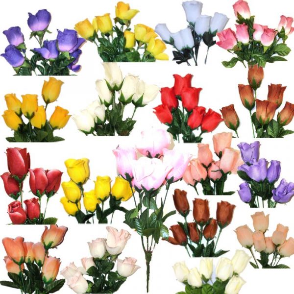 SALE Silk Rosebuds Bush has 6 buds per stem. Buy this for weddings, rehearsals, stage performances, boutonnieres, and more. Available in many colors.